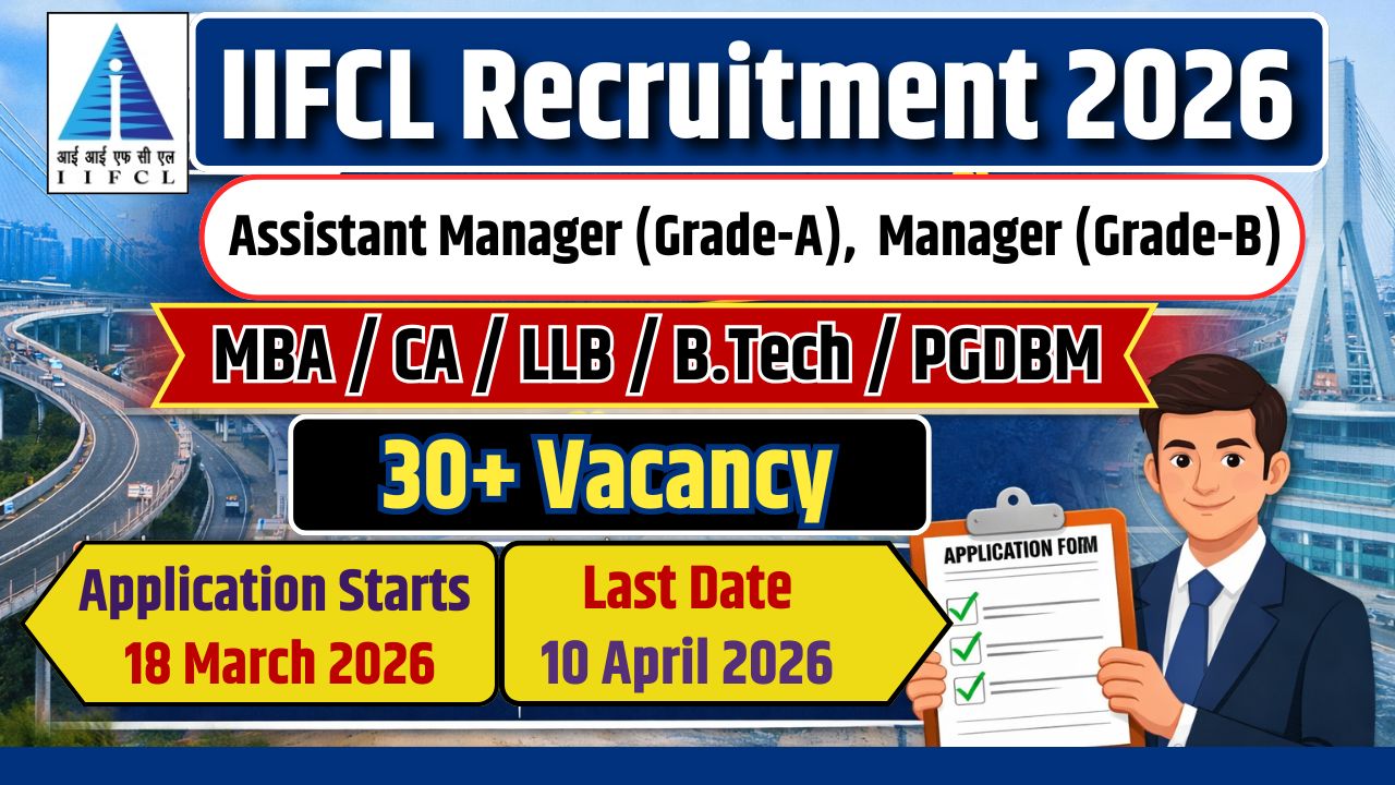 IIFCL Recruitment 2026: India Infrastructure Finance Company Limited (IIFCL) 2026 के लिए Official Notification जारी किया है। Assistant Manager (Grade-A) और Manager (Grade-B) सहित कुल 37 पदों के लिए आवेदन आमंत्रित किए गए हैं। इच्छुक और पात्र उम्मीदवार आधिकारिक वेबसाइट iifcl.in पर जाकर ऑनलाइन तरीके से आवेदन कर सकते हैं। आवेदन की प्रक्रिया 18 March 2026 से शुरू हो चुकी है, जो कि 10 April 2026 तक जारी रहेगी।
